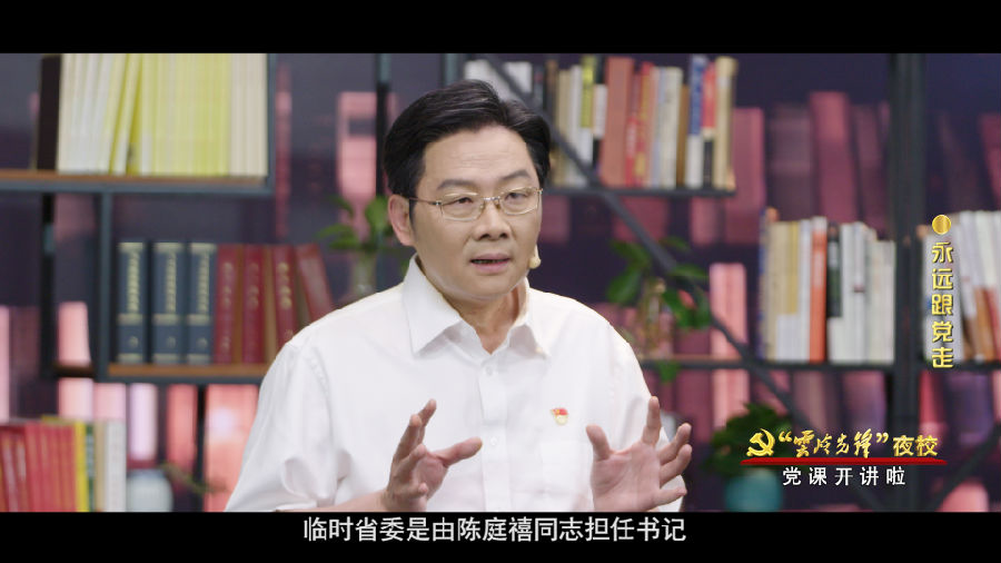 第5期“云岭先锋”夜校节目邀请中共云南省委党史研究室主任苏红军同志、云南省社科院副院长黄小军同志2位嘉宾,通过故事党课的形式,围绕中共云南地方党组织的建立和中共云南第一次代表大会召开等内容进行讲授,持续推动“党课开讲啦”活动深入开展。