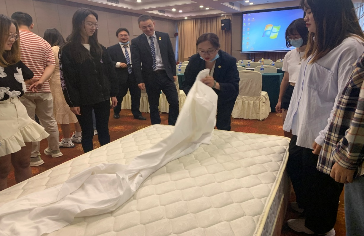 同时,丽水云泉大酒店客房部楼层服务员为同学们详细讲解了查房和房间清洁的注意事项,并到客房进行了练习。