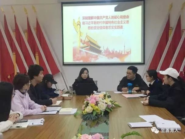 - 在教育学院“不忘初心、牢记使命”主题教育开展之际,11月28日,学院党总支副书记杨淑雯为全体辅导员老师开展了一次以“深刻理解中国共产党人的初心和使命,做习近平新时代中国特色社会主义思想的坚定信仰者忠实实践者”主题的党课。党课上,杨淑雯副书记结合自己实际和自身理论学习,就怎样坚守初心使命,与大家深入交流。杨老师在党课最后强调,作为一名高校辅导员,要做习近平新时代中国特色社会主义思想的忠实践行者,要把个人奋斗目标和学校发展目标有机结合,找准自身定位,主动担当作为,认真履职尽责,用心做好学生锤炼品格的